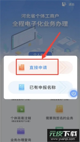 第三步:在页面中部点击直接申请按钮开始办理
