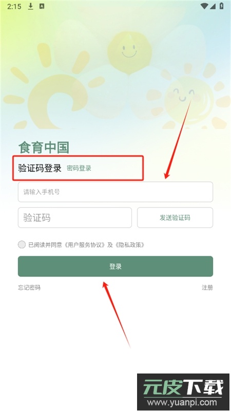 4、返回登录页面,可选择验证码或密码方式登录账号。