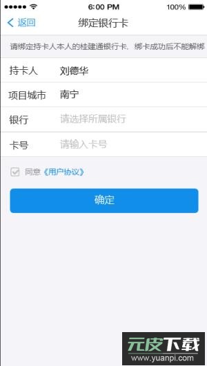 注意:绑定的银行卡必须为本人所有,成功绑定后无法解绑或更换。