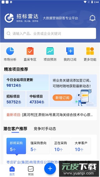 招标雷达是一个专注于招投标采购的信息服务平台,每日更新项目信息超过40万条,涉及工程、服务及货物等多个行业领域;该平台能够实时向个人与企业用户提供招标公告、中标结果、工程拟建及采购意向等优质项目内容。使用这款软件不仅可以获得第一手的招投标资讯,还能一键获取项目负责人的联系方式,帮助企业有效控制客户获取成本,降低商务开支,进而提升项目中标的机会。