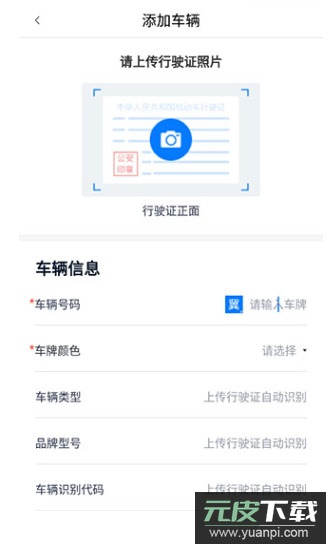 上传车辆行驶证照片并填写相关信息,即可成功添加车辆;