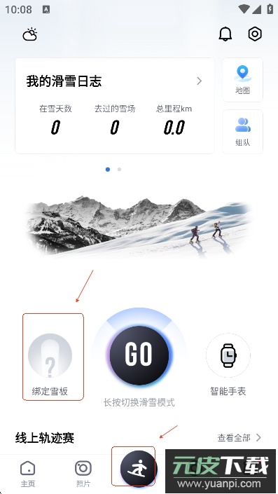 在滑雪页面点击“绑定雪板”添加自己的雪板,便于后续记录滑行轨迹。