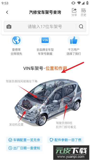 1、拥有最新全品牌全车型的车架号数据;