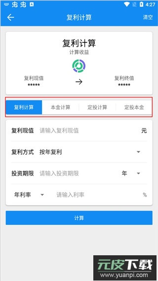 2、进入主界面,选择“复利”功能开始计算;
