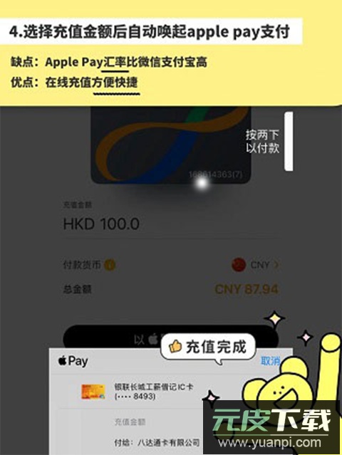 提示:Apple Pay的汇率可能略高于微信或支付宝,但其在线充值过程更为快捷。