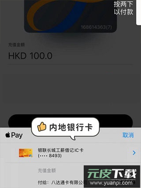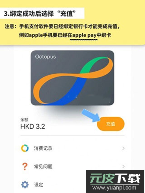 注意:需先在支付软件中绑定银行卡才能进行充值,例如Apple Pay。