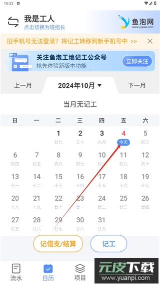 1、启动安装好的应用程序,在界面中选择需要记工的具体日期;