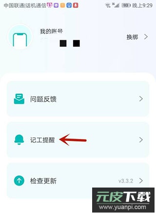 2、在个人中心页面内,找到并选择记工提醒功能;