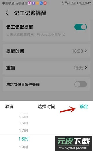 4、设定好具体的提醒时间,最后点击确认保存设置。