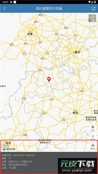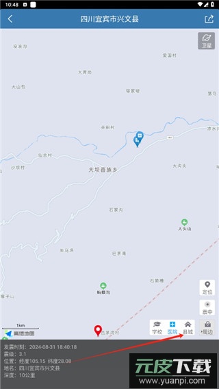 3、内置地图服务,可查看震中地理位置及周边地图详情;