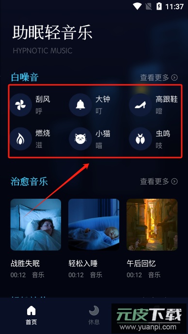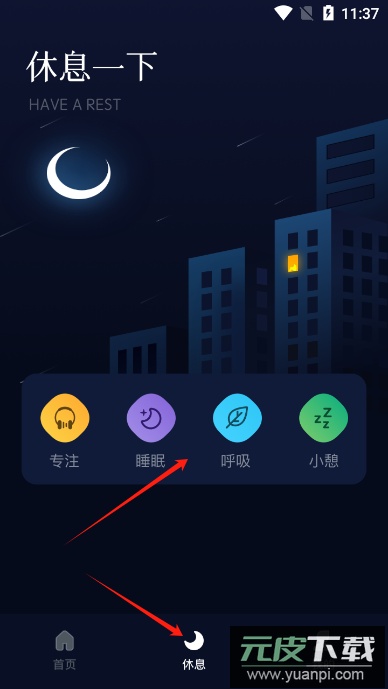 2. 点击底部导航栏的休息选项,可以切换不同的休息模式,获得多样化的睡眠体验;