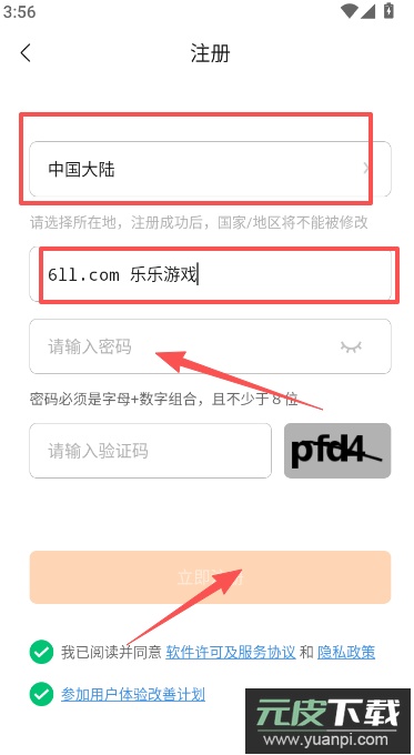 2、设置用户所在地区,填写个人邮箱并创建登录密码,输入图形验证码后点击立即注册。