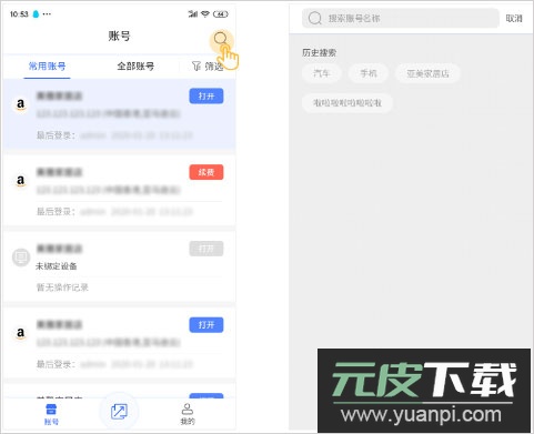 应用也提供了账号快速定位功能:可通过界面搜索图标输入账号名称进行查找;