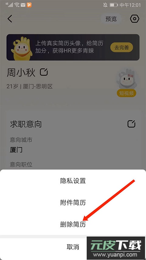 4、选择底部“删除简历”选项,即可完成简历关闭操作。