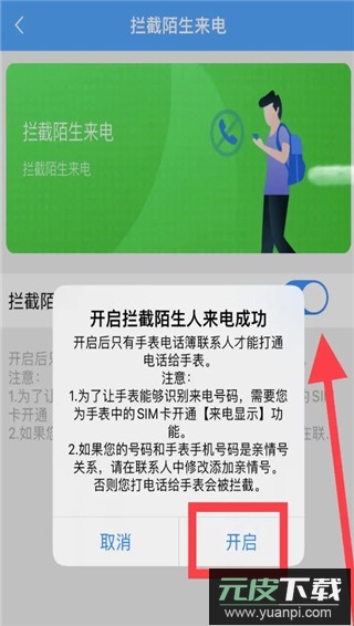 点击页面中的【开启】按钮,即可成功设置陌生来电拦截。