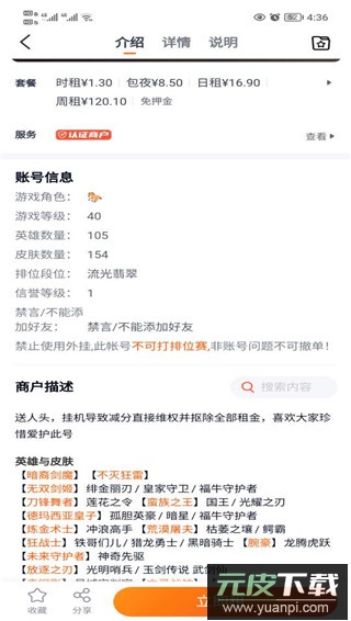 u号租平台官方版是一个专注于游戏账号租赁服务的应用,集合了众多主流游戏资源。用户既可以找到手游如王者荣耀或火影忍者的账号,也能租到端游例如使命召唤与绝地求生的账号。首页会根据偏好推荐优质账号,也能直接搜索游戏名称快速定位。每个账号都详细展示了区服、价格与具体信息,方便用户比较选择。平台提供全天候客服支持,租赁过程中遇到任何问题,都有专业团队协助解决,全力维护用户权益。