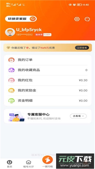 1.打开软件后进入个人中心页面,点击切换到卖家版本。