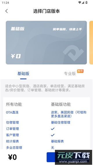 2、选择适合的门店版本,应用提供基础版与专业版供用户按需选用;