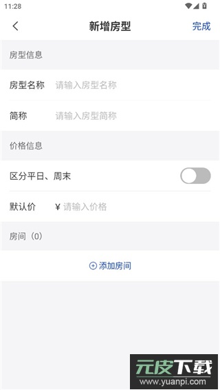 5、在新增房型页面中输入房型描述与价格信息,完成后点击添加房间按钮;