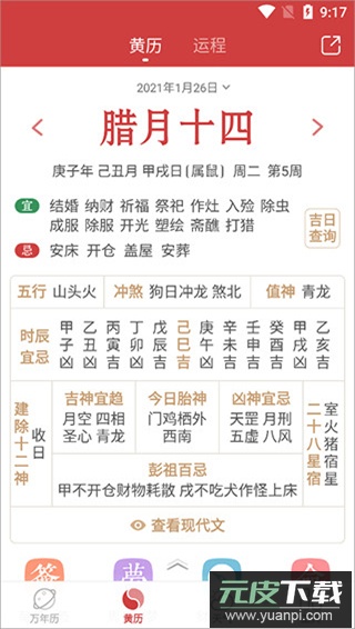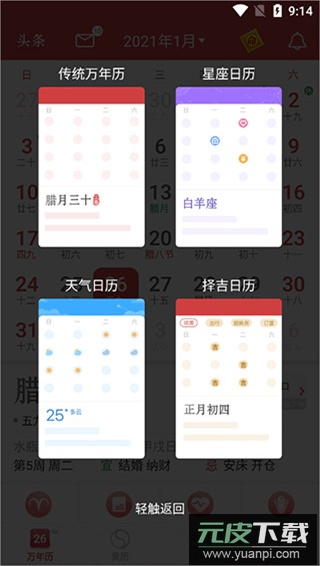 3、再次点击返回主界面,选择右侧黄历栏目,可查看中国传统黄历信息;
