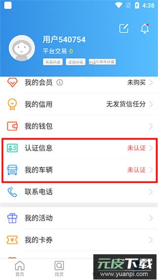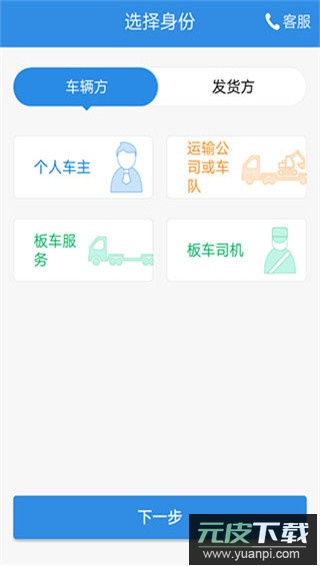 4、完成身份认证,选择“车辆方”或“发货方”角色,上传所需资料并等待审核通过即可。