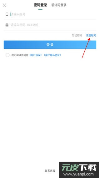2、点击注册账号,老用户可直接输入手机号与密码登录;