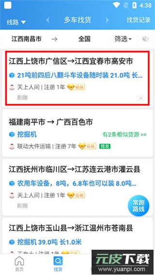 2、寻找货源可进入找货模块,根据筛选条件挑选合适货物;