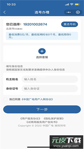 3. 选择套餐,并输入相关信息,最后根据页面提示进行下一步操作