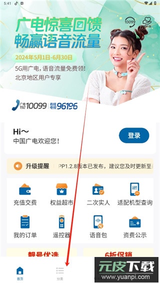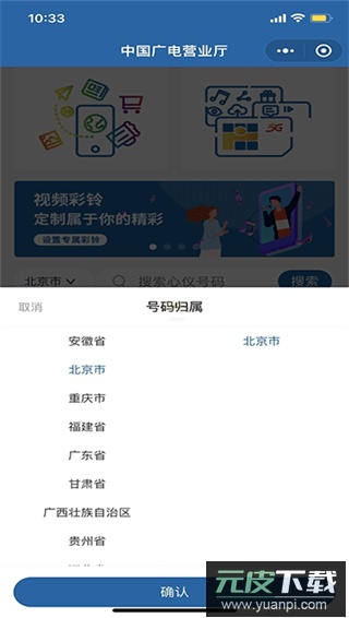 1. 打开中国广电app,登录账号后,在号卡专区选择号码归属地