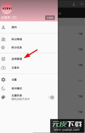 2、在个人中心列表里,找到并进入“应用管理”功能,在此配置更新提示。