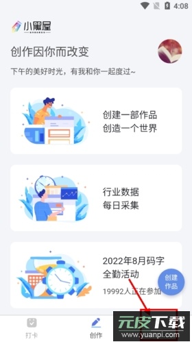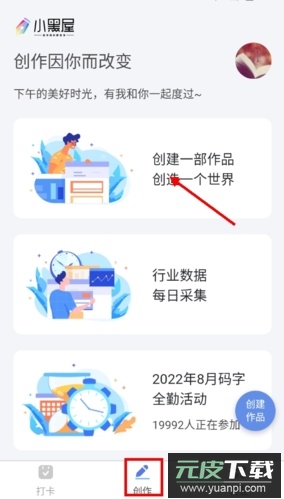 1、点击“创作”进入写作区域,选择对应板块即可开始创作。