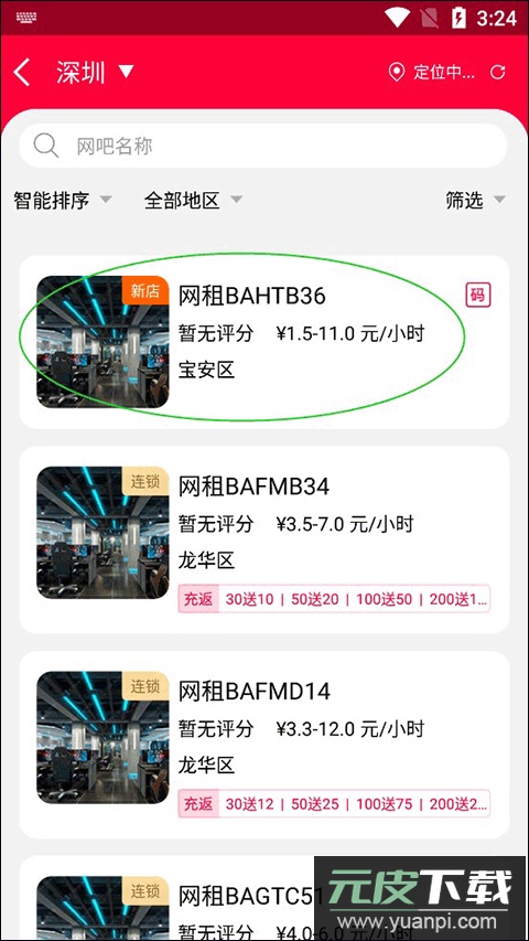 选择目标网吧并点击进入详情介绍页;