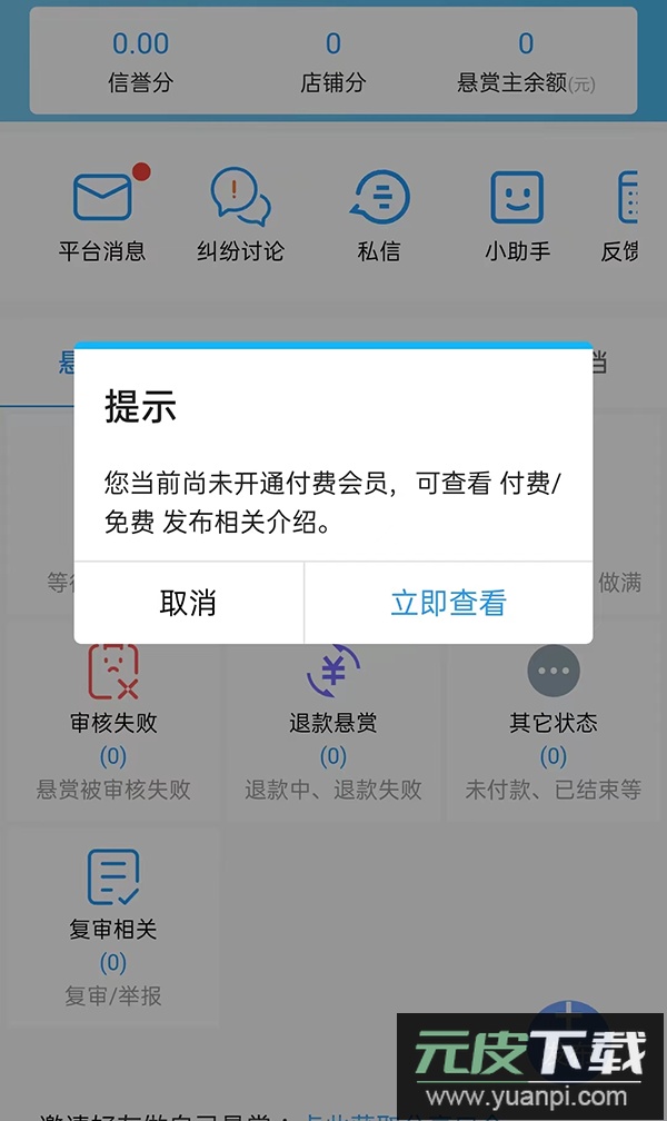 4. 系统会提示发布任务需先开通平台会员,请按指引操作;