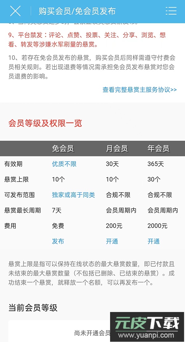 5. 仔细阅读会员权益介绍及相关费用说明,确认后即可完成开通并发布你的任务。