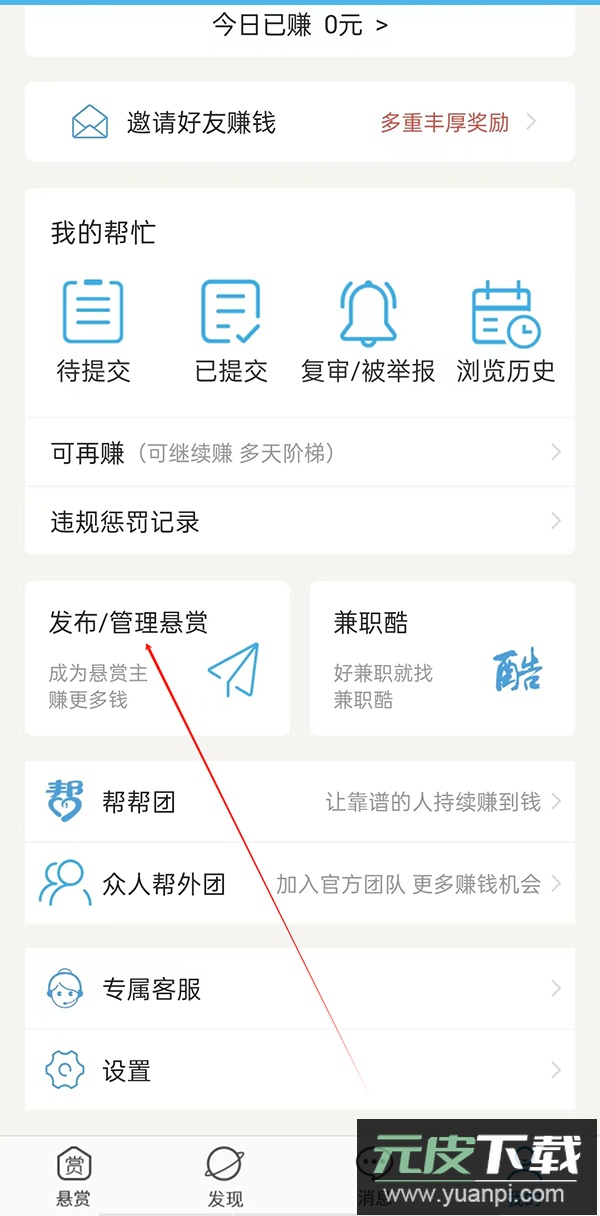 2. 在个人页面中找到并点击“发布/管理悬赏”功能入口;