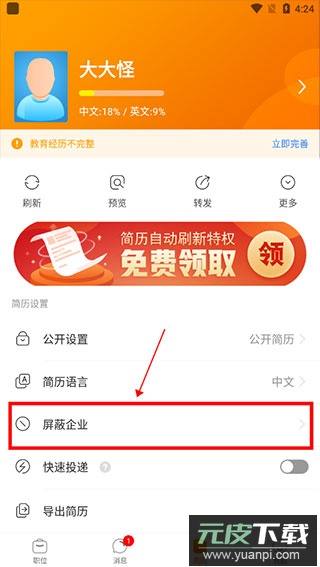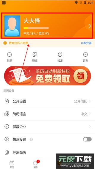 4、提供简洁的简历管理工具,支持随时修改与一键更新;
