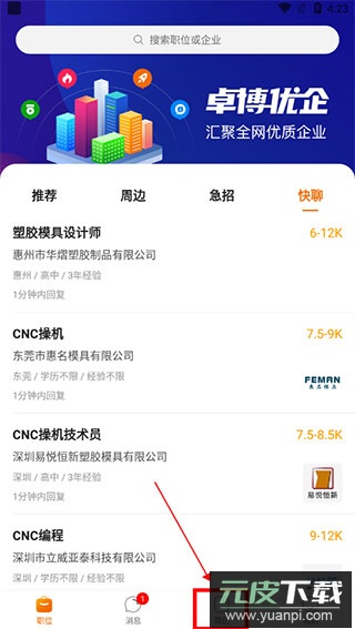 2、结合地理位置进行智能检索,快速定位周边招聘信息;