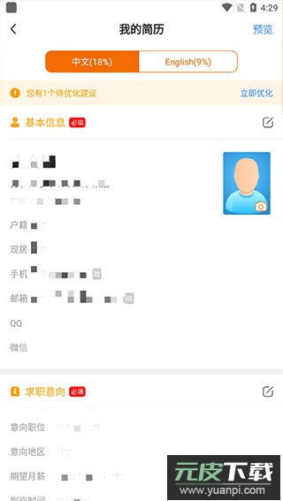 2、可对基本信息、求职方向、教育经历、工作履历等项目进行修改;