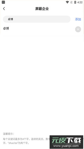 3、输入不希望看到的企业名称,添加后即可完成屏蔽设置。