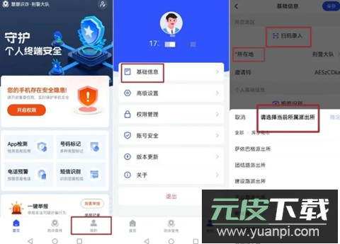 安装完成后,点击右下角“我的”进入基础信息页面;随后点击所在地选项,选择库尔勒市并确定居住地派出所,保存设置即可。