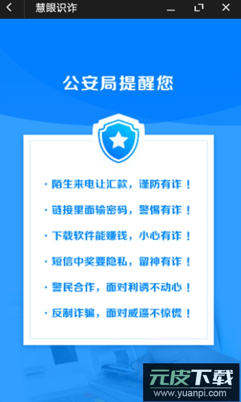 一键举报通道:支持对可疑号码、短信或应用快速举报,线索直达反诈平台,参与全民反诈。