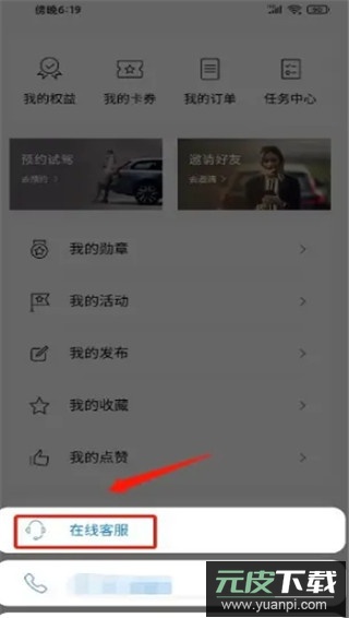 2. 在弹出的菜单中选择在线客服功能;