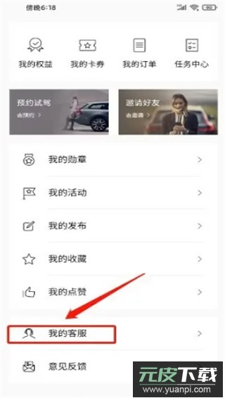 1. 进入应用我的界面,点击我的客服选项;