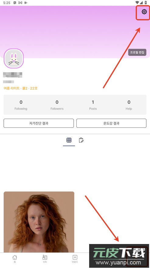 1.进入软件后点击右下角的人像图标(我的)以及右上角的齿轮图标(设置)。