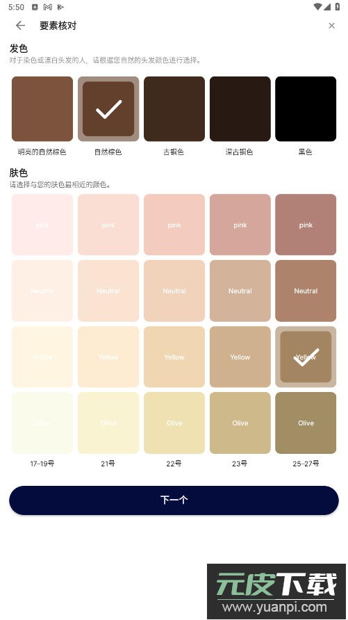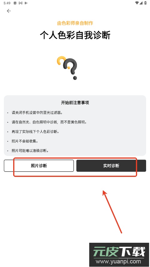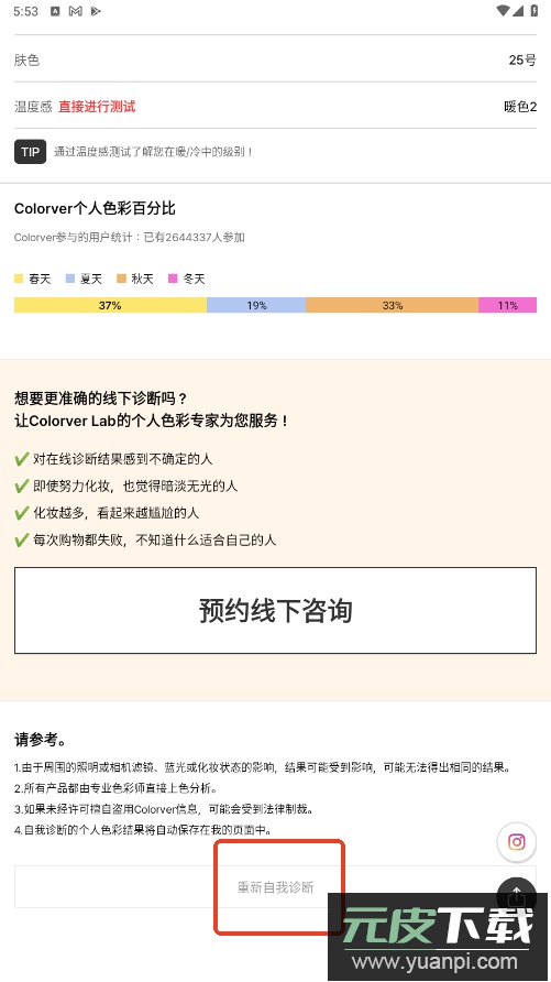 3、开始自我诊断:登录后按照指引进行诊断,步骤一般包括要素检查(如发色、肤色、瞳孔亮度与颜色)、明度检查和饱和度检查等,以全面评估个人色彩特征。
