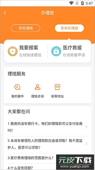 2、平台支持手机充值、洗衣服务、在线问诊、外卖订购、电影购票等功能;这里以理赔为例,用户可以查看与理赔相关的详细知识;