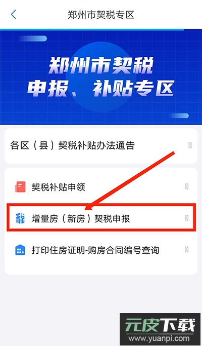 2、进入郑州市契税专区,选择新房契税申报选项;