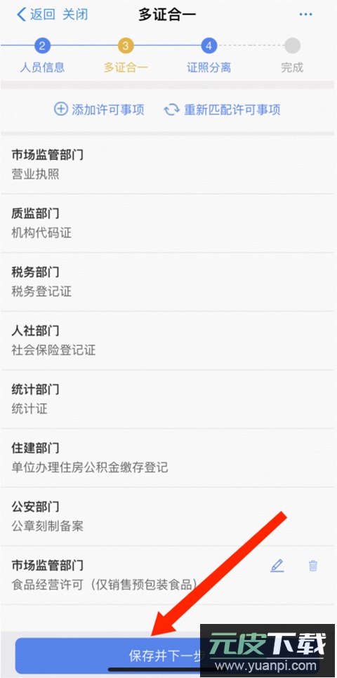 4、在多证合一界面填写相关信息,保存并进入下一步,待审核通过后即可取得营业执照。