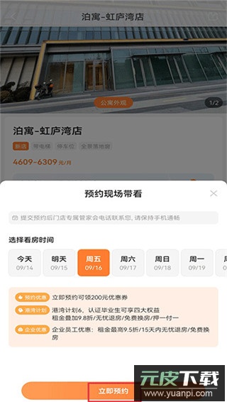 3、确认后即可预约现场看房,选择合适时间并提交订单,后续将有专人联系安排;