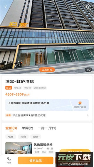 2、页面会清晰展示房源具体位置、价格、电梯及车位等详细信息;